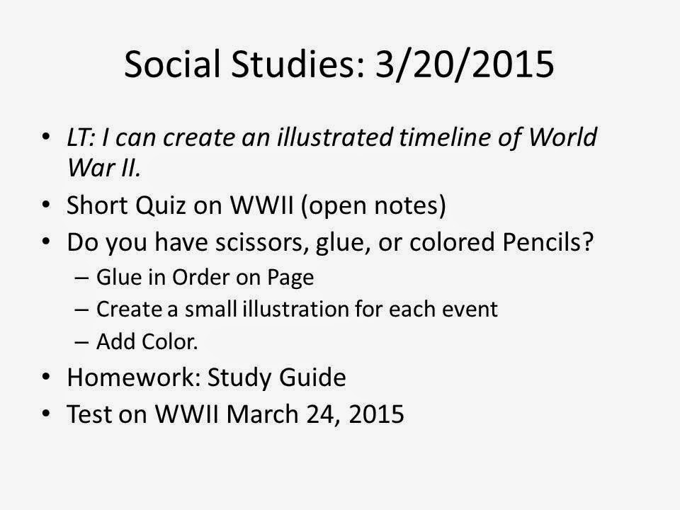 We will have our Test for World War II on Tuesday March 25,